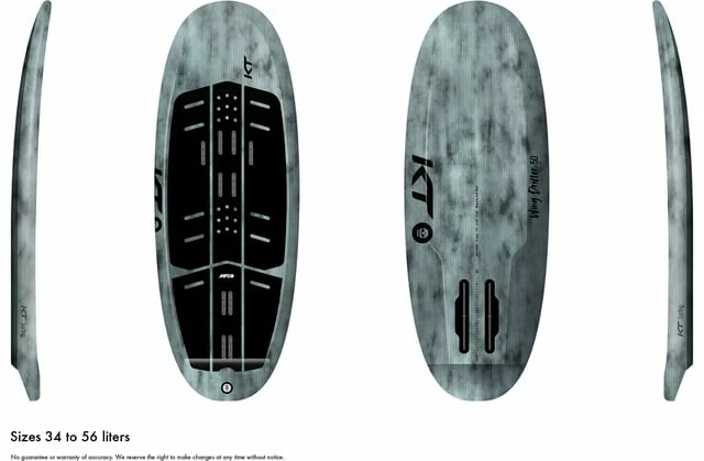 KT Surfing signature quad concave bottom with beveled rails for the smoothest touchdown and fastest release when foiling. Rail shape/tuck for quick paddling and fast release to take flight. The bigger sizes of the Wing Drifter are uncompromisingly dedicated to Wing-foiling and Sup-foiling. Its key characteristic also being a super compact build paired with a high volume and wide shape. New for the 2022/23 model is a modified deck shape for increased comfort when winging. Constant volume flow provides enough float and stability to get going with a wing or paddle, yet doesn’t feel bulky or cumbersome in flight when wanting to turn or pump. Additional insert options for wing.”